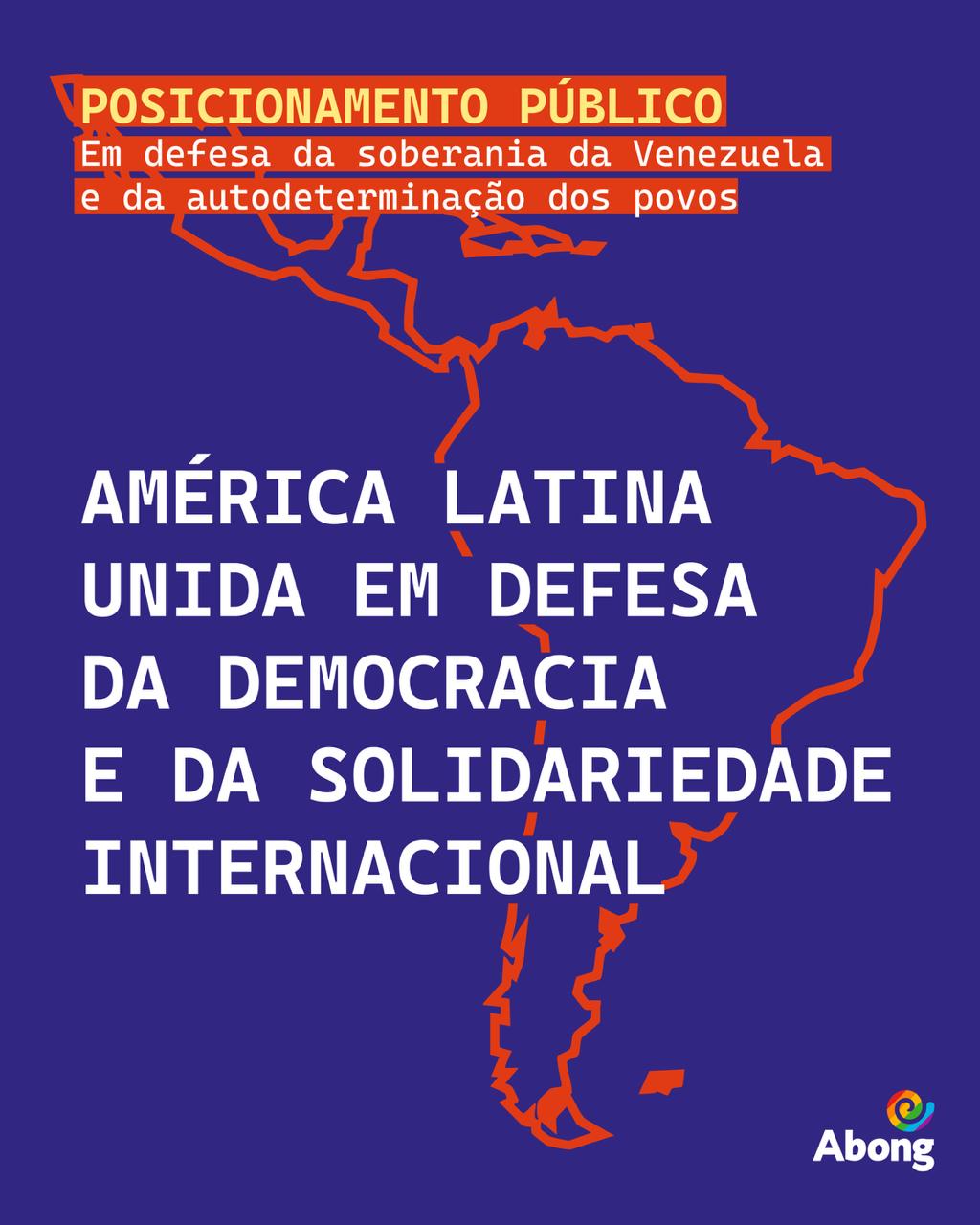 Diante desse panorama, a Abong expressa sua sincera solidariedade ao povo venezuelano e reitera seu compromisso com a democracia como modelo de governança global. Em toda nossa trajetória, temos como missão central a valorização e a defesa das organizações da sociedade civil, por reconhecer que a livre associação e autonomia desse campo é condição indispensável para a existência democrática, para a resolução de quaisquer conflitos e para a defesa dos povos em sua pluralidade.